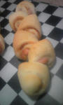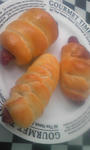 小さめのウインナーにパン生地を編み込んで焼きました。